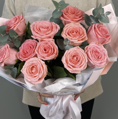 Буукет 11 розовых роз с эвкалиптом | Купить с доставкой в Измайлово