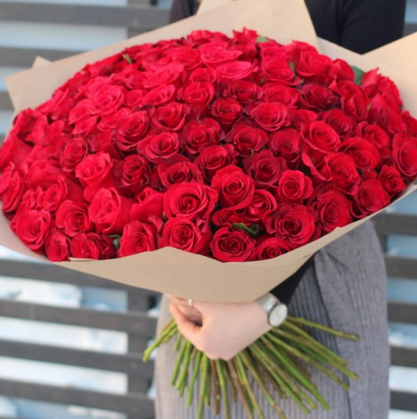 Букет 101 красная роза в крафте | Купить в Измайлово