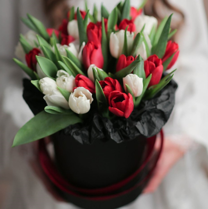 Коробка красных и белых тюльпанов | Купить в Измайлово