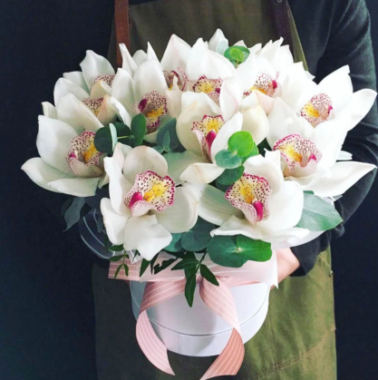 Шляпная коробка с орхидеей - купить с доставкой в Измайлово